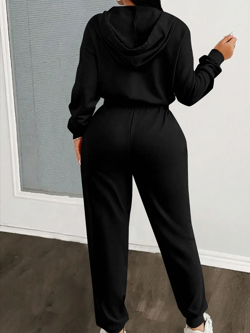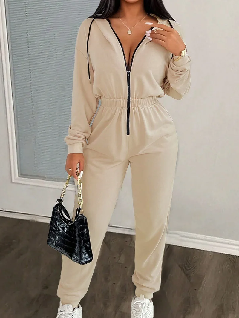 2025 Spring And Winter New Women's Hooded Zipper Elastic Waist l One-Piece Sport